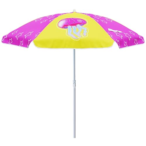 AMMSUN 5ft Seaside Umbrella for Sand Box Water Table Picnic Table - Kids Durable Umbrellas for children Beach Camping Garden Outdoor Play Shade Pink Yellow Jellyfish