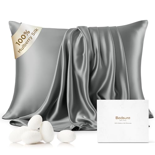 Bedsure 100% Mulberry Silk Pillowcase for Hair and Skin,Dark Grey Silk Pillow Case with Hidden Zipper, Gifts for Women Men, Queen Size Single Pack,20x30 Inches