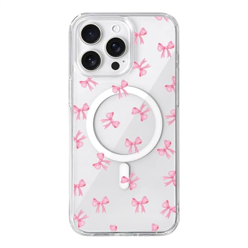 LALAPOPO Designed for Magnetic iPhone 13 Pro Case, Cute Pink Bows Painted Clear Phone Case for Women Girls, Soft TPU Edge PC Back Protective Shockproof Phone Case