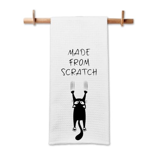 GOSJINNK Funny Kitchen Dish Towels, Made from Scratch Dishcloths, Trendy Kitchen Decor, Funny Black Cat Hand Towel Gifts for Cat Lovers, Cute Housewarming Gifts for Women Hostess Housewife Friend