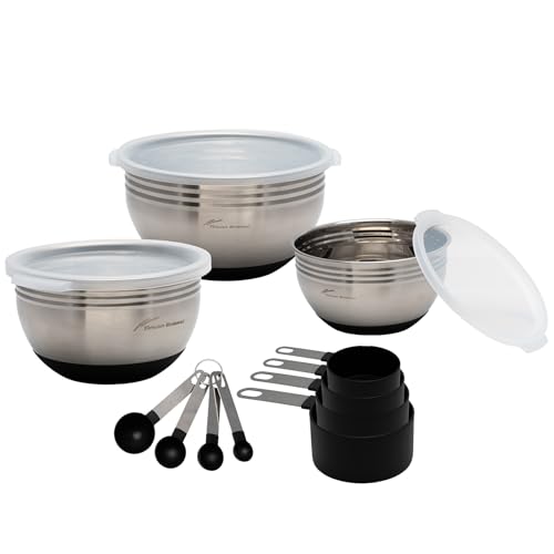 Tinlon Enamel Mixing bowls with LIDS, stainless steel mixing bowls with airtight LIDS for space-saving mixing bowls suitable for cooking, baking, preparation and food storage