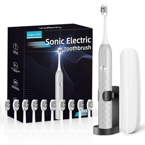 Seapeoa Adult and Children's Sonic Electric Toothbrush - Adult Rechargeable Electric Toothbrush with 10 Brush Heads and Travel case, 42000 VPM Motor, Built-in 2-Minute Intelligent Timer