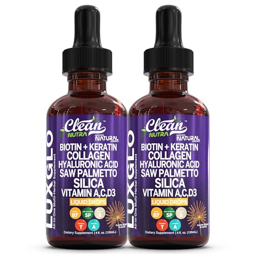 Biotin Liquid Drops Collagen Keratin Hyaluronic Acid Saw Palmetto for Hair Skin and Nails Silica Vitamin A C Vitamin D Bamboo Turmeric Zinc Folate Magnesium Horsetail LuxGlo by Clean Nutra - 2Pack