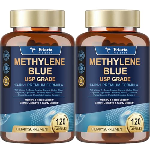 2Pack USP Methylene Blue Pharmaceutical Grade, 13 in 1 Upgrade Patented Brain Formula with Vitamin C Ester, Bacopa, Phosphatidylserine - Memory, Focus, Clarity, Cognitive, 240 Count
