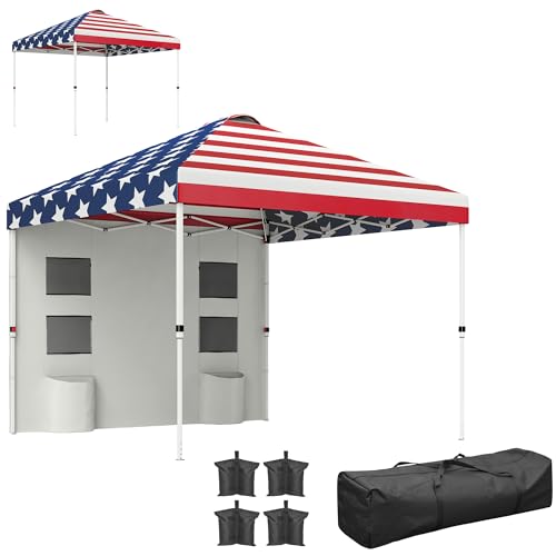 Outsunny 10' x 10' Pop Up Canopy Tent with Sidewall, UPF50+ Instant Sun Shelter with Storage Pockets, Vented Roof for Parties, Height Adjustable, Carry Bag, Sand Bags for Outdoor Patio, American Flag