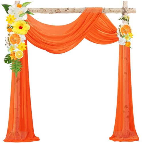 VOK Orange Wedding Arch Draping Fabric Chiffon Fabric, 29in x 18Ft Sheer Chiffon Outdoor Curtain for Wedding Ceremony Birthday Party Decoration (Orange,1 Panel)