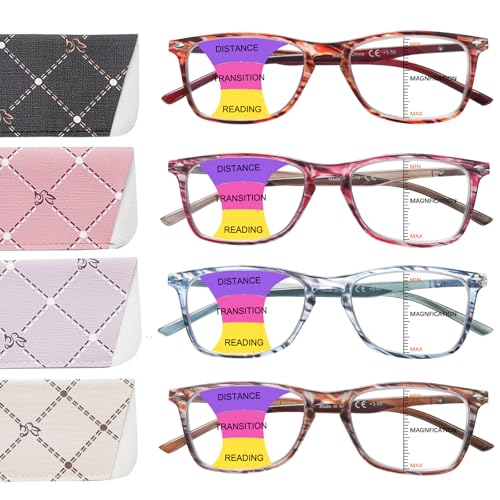 BONCAMOR 4 Pack Progressive Multifocus Reading Glasses Men and Women Computer Blue Light Blocking Anti Eyestrain Readers (Blue Brown Red Purple, 3.5, Diopters)