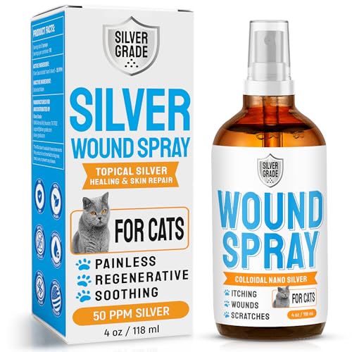 Cat Wound Care Spray with Silver – Wounds, Rashes, Hot Spots, Itch, Scratching, Irritation, Bites & Burns – Use a Cat Cone to Prevent Licking – Safe Formula – 4 Oz