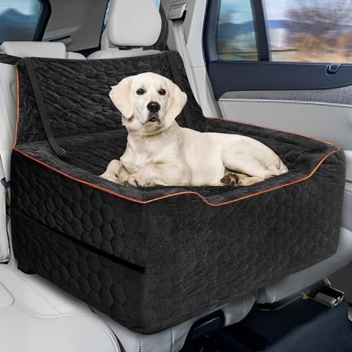 Vdamu Dog Booster Seat for Larger & Medium Dogs – Comfortable Dog Car Bed with Washable Cover and Storage Pockets for Pets Up to 60lbs (Black)