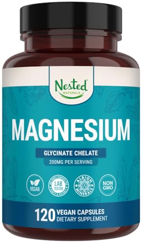 Nested Naturals Magnesium Glycinate Chelate - 200mg Chelated Magnesium Supplement for Muscle Cramps, Relaxation, & Sleep Support - 100% Albion TRACCS Buffered Magnesium Glycinate - 120 Vegan Capsules