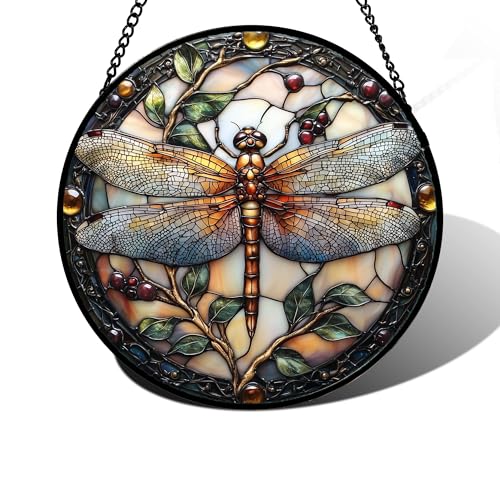 DASTOLL Stained Glass Window Hanging - Dragonfly Plant Suncatcher Ready to Hang Window Doors Home Decoration, Christmas, Mother's Day Birthday Gifts for Women, Men, and Mom 6.3X6.3IN