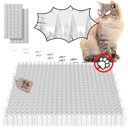 ohlela 16 Pack Upgraded Scat Mat For Cats - 16 x 13 Inch Cat Spike Mat with 1 Inch Spike is an Useful Cat Repellent Indoor & Outdoor Mat to Deter Cats & Dogs. Cat Deterrent Indoor 23sqft Area Coverage