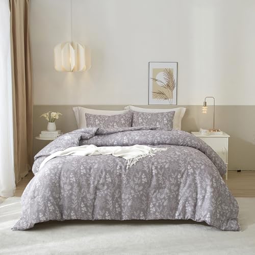 EAVD Botanical Floral Comforter Set Twin XL Grayish Purple Soft Microfiber Chic Cute Garden Floral Bedding Comforter Set 1 Twin XL Comforter and 2 Pillowcases Fresh Botanical Comforter for All-Season