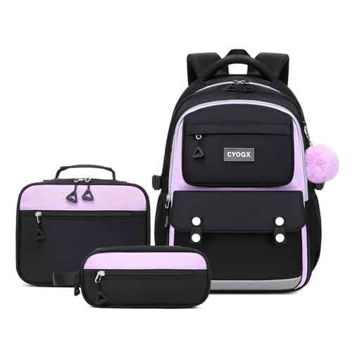 2.Integrated backpack + cute lunch box student set, 2-in-1 set includes a girls backpack (17.3 *11.4*5.5-in), a spacious lunch box (9.5*5.9*11.4-in), and Integrated external pencil case or wallet. Lightweight at 0.7KG, 14in laptops, and store self contained foods in a lunch box to keep them fresh. Ideal for teens and kids aged 5-16!