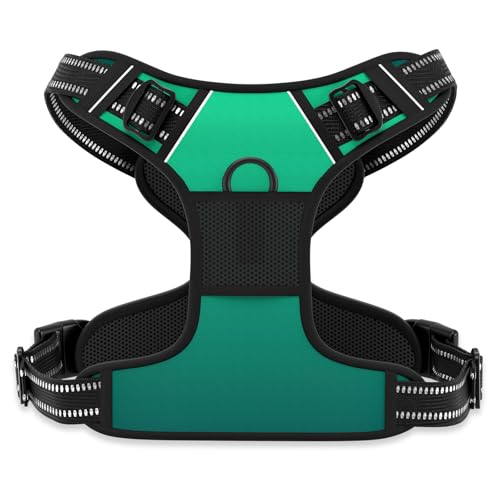 Rnivvi No Pull Dog Harness, Cute Reflective Large Sized Puppy Harness, Adjustable Soft Padded Vest for Large Dogs, Heavy Duty Pet Vest with Easy Control Handle for Walking Training, Gradient Green