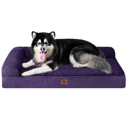 EHEYCIGA Memory Foam Dog Bed XXL, Giant Dog Bed Orthopedic with Washable Removable Cover, Waterproof Pet Bed Couch for Jumbo Dogs, 48x36x7 Inches, Purple