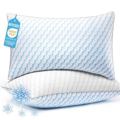 HEYCUZI Cooling Bed Pillows Queen Size - Premium Down Alternative Pillows Set of 2 for Side, Back, and Stomach Sleepers - Hotel Quality Fluffy Soft Microfiber Fill Breathable Skin-Friendly