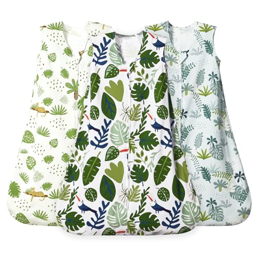 david's kids 3 Pack 100% Cotton Baby Sleep Sack 6-12 Months, Ultra Soft Baby Wearable Blankets with 2-Way Zipper, Comfy Sleeping Bags for Infant Newborn Boys Girls Neutral, Medium Size, Leaf