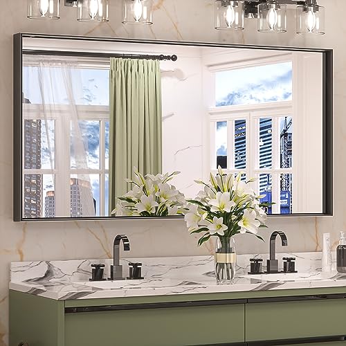 Keonjinn 48 x 24 Inch Black Bathroom Mirrors for Over Sink Bathroom Vanity Mirror for Wall Metal Frame Rectangle Mirror Large Square Corner Matte Black Mirror Full Length Mirror(Horizontal/Vertical)