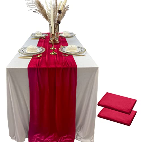 Luxurious Velvet Table Runner, 10ft Wedding Reception Decorations, 20x120inch Soft Velvet Fabric, Table Linen Overlay, Wedding Table Runners (Red, 20X120inch, 2pack)
