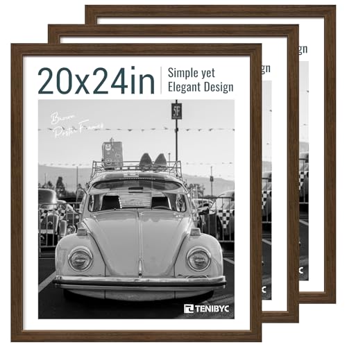 TENIBYC 20x24 Poster Frame 3 Pack - Brown Woodgrain, Wood Picture Frame, Wall Gallery Frame - Wall Hanging