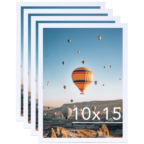 JCJMY 10x15 White Picture Frame Set of 4, Horizontal and Vertical Formats for Wall Hanging, 10 x 15 Wall Gallery Poster Photo Frames with Shatter Resistant Plexiglass, 4 Pack,White
