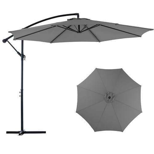 SMUG 10FT Cantilever Patio Umbrellas, Hanging Outdoor Offset Umbrella with 8 Ribs, UV Protection for Pool Garden Backyard Market, Dark Grey