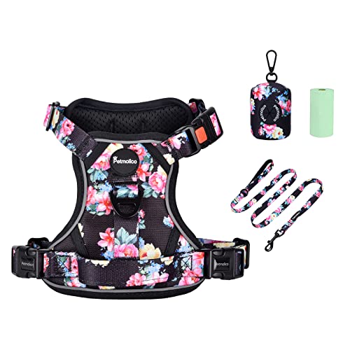 Safety in Outdoors: Having a sturdy back D-ring allows for confident leash control during casual walks, hikes, or jogs. The padded top handle provides an instant grab option when needed, such as quickly grabbing your dog at the park. Additionally,the harness also features high visibility with all-around reflective stripes, helping to light up your pup during nighttime outings