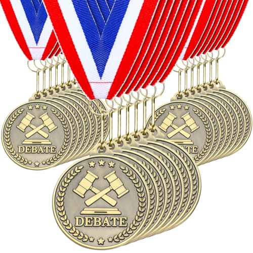 Quelay 30 Pcs 2'' Award Medals Bulk Gold Winner Medals with Neck Ribbons Metal Trophy Award Prize Gift for Tournaments, Competitions, Party, Kids and Adults (Debate)