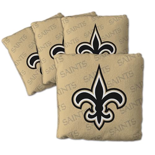 YouTheFan Officially-Licensed NFL New Orleans Saints Set of 4 Cornhole Bags - All Weather Regulation 6” x 6” Size - 16oz Weight - Designed in USA