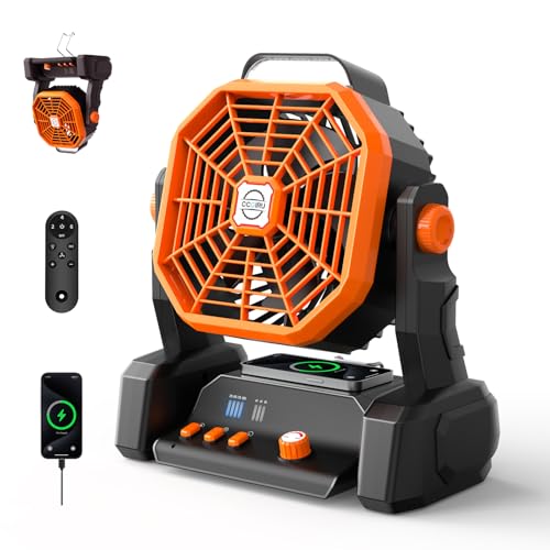 Portable Camping Fan Rechargeable with Inductive Charging Function, 20000mAh Battery Operated Fan, Outdoor Battery Powered Fan, 3 Timer for Picnic, Fishing, Travel, Home