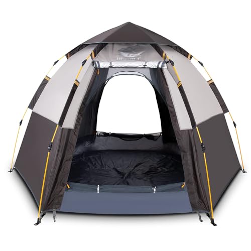 Hewolf 2/3/4 Person Camping Tent - Instant Pop Up Waterproof 2 Doors Tent with Easy Setup | 3-Season Hexagonal Dome Design for Family, Hiking & Traveling (Double Gray)
