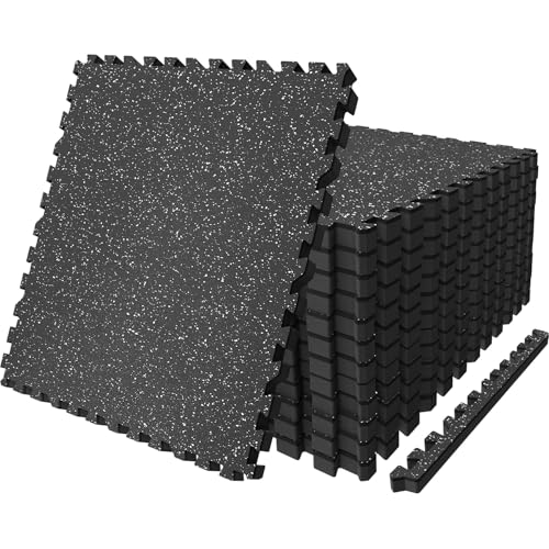 AIRHOP 0.79in Thick 48 Sq Ft Exercise Equipment Mats, 12 Tiles Upgraded Rubber Top with High Density EVA Foam, Large Interlocking Puzzle Gym Flooring for Home Gym, Heavy Weight Workout,Black & White