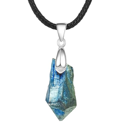 TILUNAMI Handmade Blue Malachite Boho Necklace for Women, Natural Stone Bohemian Jewelry with Black Wax Rope for Men, Unique simple Peacock Pendant Adjustable 15.75-17.72 Inch Healing Talisman