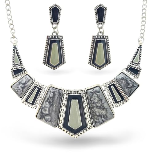 TILUNAMI Vintage Tibetan Jewelry Set | Boho Silver Rhinestone Collar and Earrings | Summer Statement Gift for Women