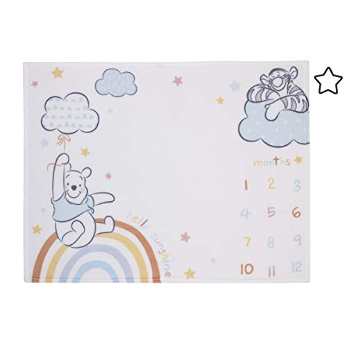 Disney Winnie The Pooh Multi Rainbow & White Super Soft Milestone Baby Blanket, Light Blue, White, Orange, Yellow