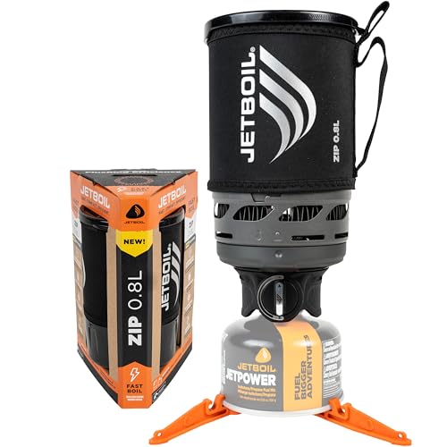 Jetboil Zip 0.8L Portable Fast Boil Stove with Easy-Turn Knob Igniter for Backpacking and Camping, New for 2025, Propane/Isobutane Burner with Cooking Cup