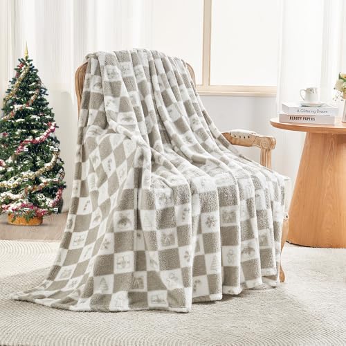 EMME Checkered Blanket Throw - 50"x60" Grey Knit Blanket Soft Fluffy Patterned Blankets for Couch, Sofa, Chair, Bed, Camping, Picnic, Travel