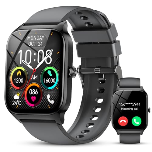 CASCHO Smart Watch for Men Women, 1.85" HD Fitness Tracker with Bluetooth Calls/Messages, IP68 Waterproof, 115+Sports Modes, 24/7 Heart Rate/Sleep Fitness Watch Compatible with iOS/Android (Black)