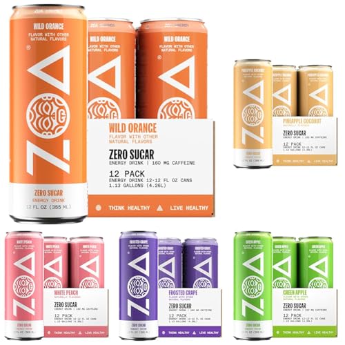 ZOA Zero Sugar Energy Drinks, Fruity Flavors Bundle - Sugar Free with Electrolytes, Healthy Vitamin C, Amino Acids, Essential B-Vitamins, and Caffeine from Green Tea - 12 Fl Oz (60-Pack)