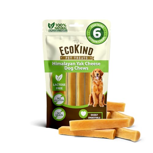 EcoKind Premium Gold Yak Cheese Himalayan Dog Chews, Dog Treats for Medium Dogs, All Natural, High Protein, for Aggressive Chewers, Medium - 6 Chews
