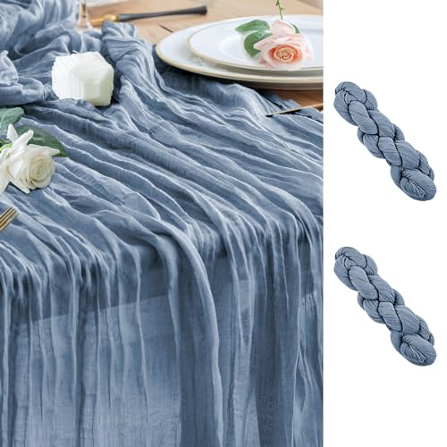 Wokceer Cheesecloth Table Runner 2Pack 10FT Dusty Blue Boho Gauze Fall Thanksgiving Cheese Cloth Table Runner for Party Long Rustic Sheer Table Runners for Baby Bridal Shower Wedding Easter Table
