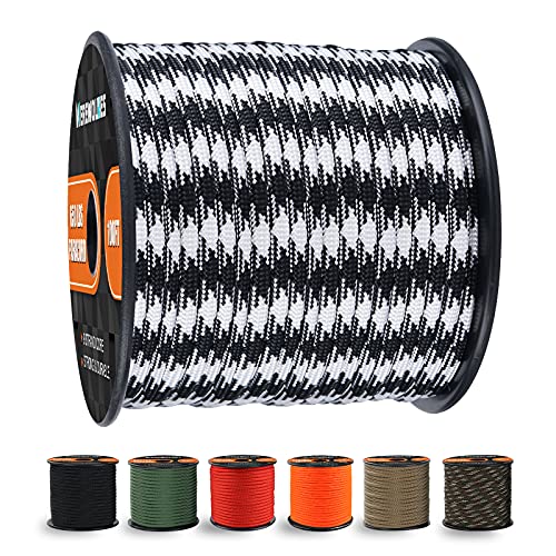 WEREWOLVES 650lb Paracord/Parachute Cord - 9 Strand Paracord Rope - 100', 200' Spools of Parachute Cord, Type III Paracord for Camping, Survival (Black White Camo, 200 Feet)