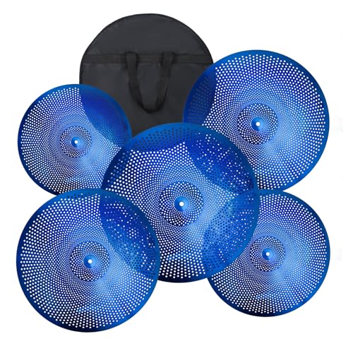 Eddaray Low Volume Cymbal Pack - 5 Piece Set with Mute Cymbals, 14" Hihats, 16" & 18" Crashes, 20" Ride, Blue