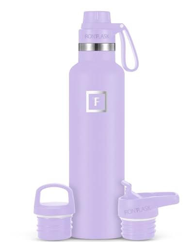 IRON °FLASK Camping & Hiking Hydration Canteens - 3 Lids (Narrow Spout Lid) Leak Proof Vacuum Insulated Stainless Steel - Hot & Cold Double Walled Sports Water Bottle - Lavender, 24 Oz