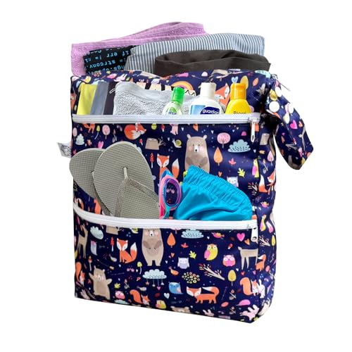 FLOCK THREE 3D Waterproof and Washable Wet Bag Luggage Organiser for Travel storage Stroller Daycare Baby Diapers Yoga Beach Pool Swimsuits Luggage Packing for Travel Accessories (Jungle Animals)