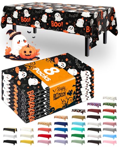 Pureegg Plastic Table Cloth Disposable 8 Pack, 54 x 108 Inch Table Cloths, Vampire Party Decorations, Halloween Tablecloths, Rectangle, Plastic Cover, Leakproof & Sturdy, Halloween Black