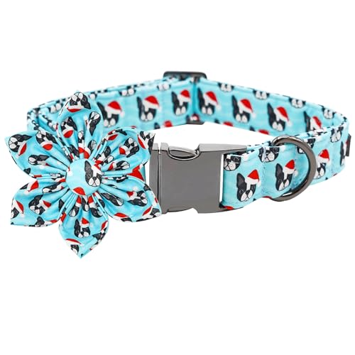 Bobo Rainbow Dog Collar - Adjustable, Blue Flower Pattern for Large Dogs