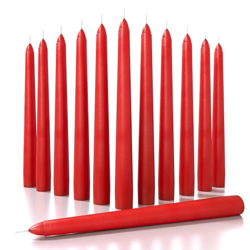 CANDWAX 8 inch Tapered Candles Set of 12 - Dripless Dinner Candle Sticks - Long Burning Candlesticks Perfect for Dinner, Party or Wedding Decor - Red Candles