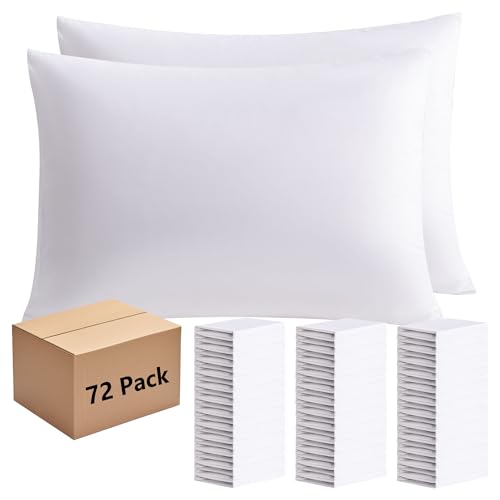 White Pillowcases Standard Size 72 Pack - Bulk Pillow Cases with Envelope Closure, Soft Brushed Microfiber Pillow Covers Hospital Hotel Airb&bs Essentials for Hosts, 20x26